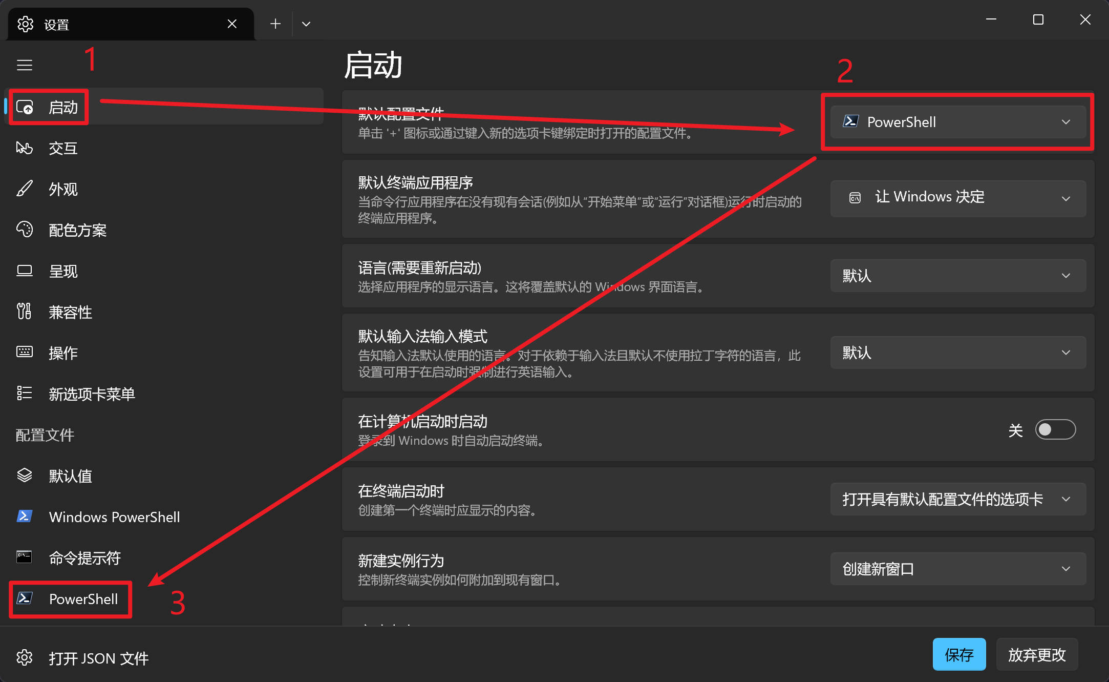 配置好PowerShell7后再配置系统自带的终端,让其默认以PowerShell打开。